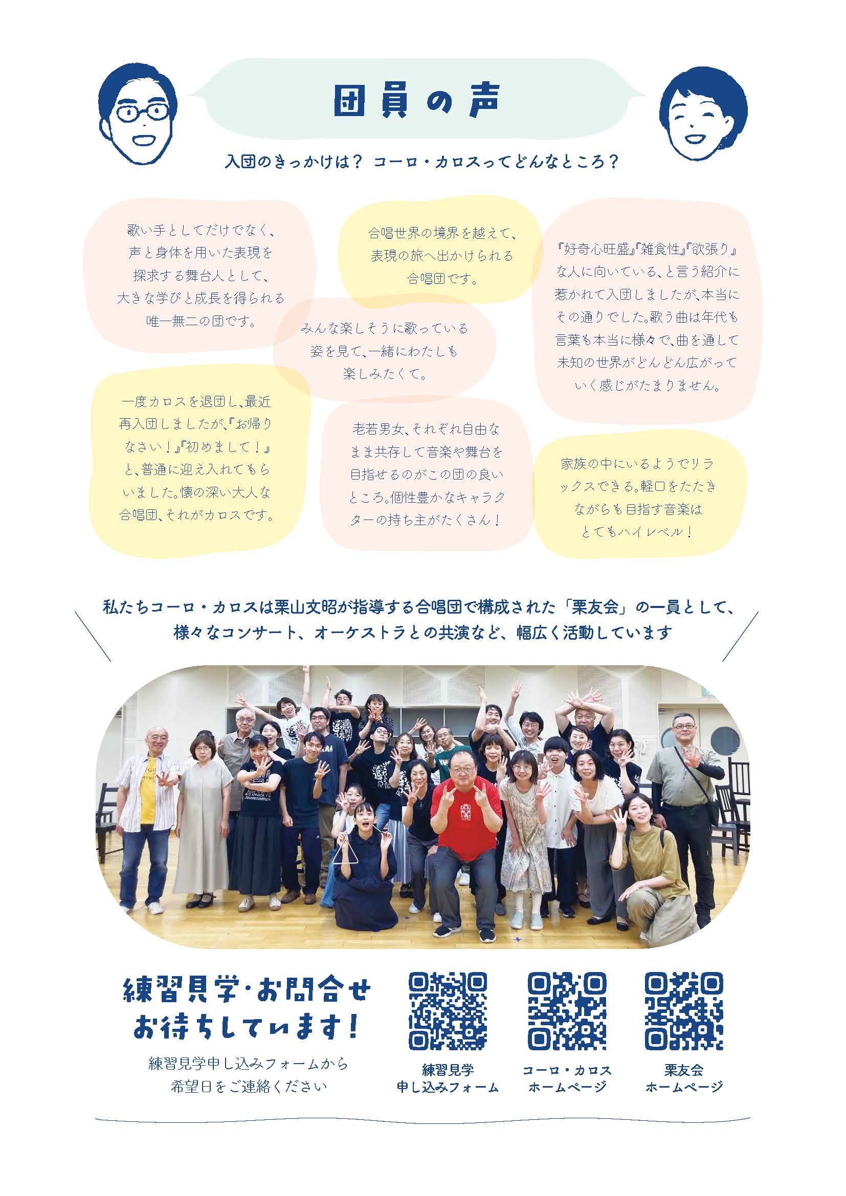 コーロ・カロスでは、常時団員を募集しています。経験の有無は問いません。